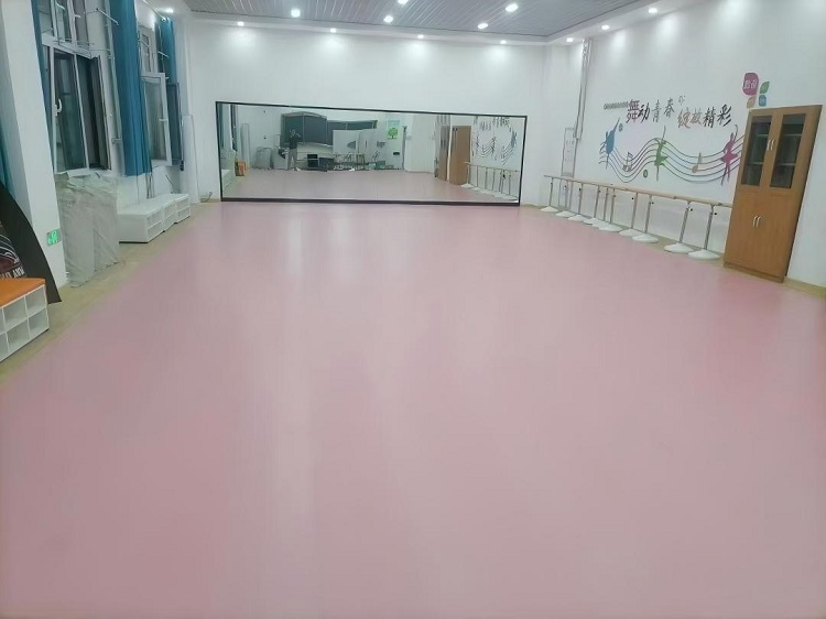 此外,PVC 地板胶在色彩与图案设计上极具表现力。丰富的色彩选择与个性化的图案定制,能够根据舞蹈室的风格与用途进行搭配,营造出独特的艺术氛围。明亮活泼的色彩适合少儿舞蹈室,激发孩子的学习兴趣;沉稳大气的色调则更适合专业舞蹈训练与演出场地,提升舞蹈室的整体格调。